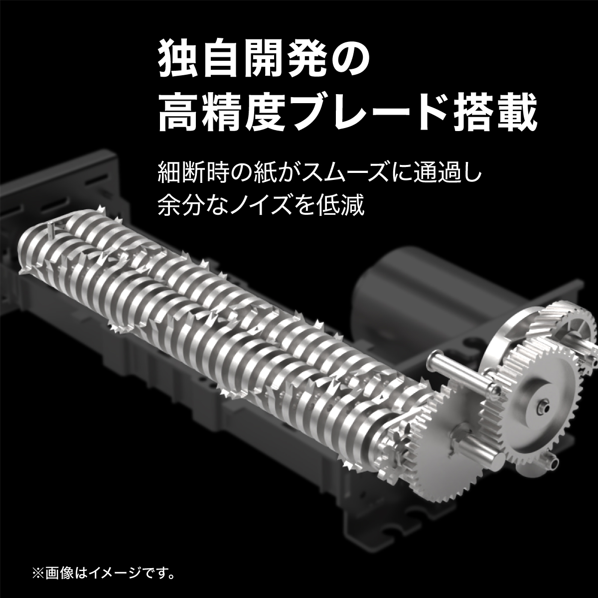 ・独自開発の高精度ブレード搭載。細断時の紙がスムーズに通過し余分なノイズを低減します
